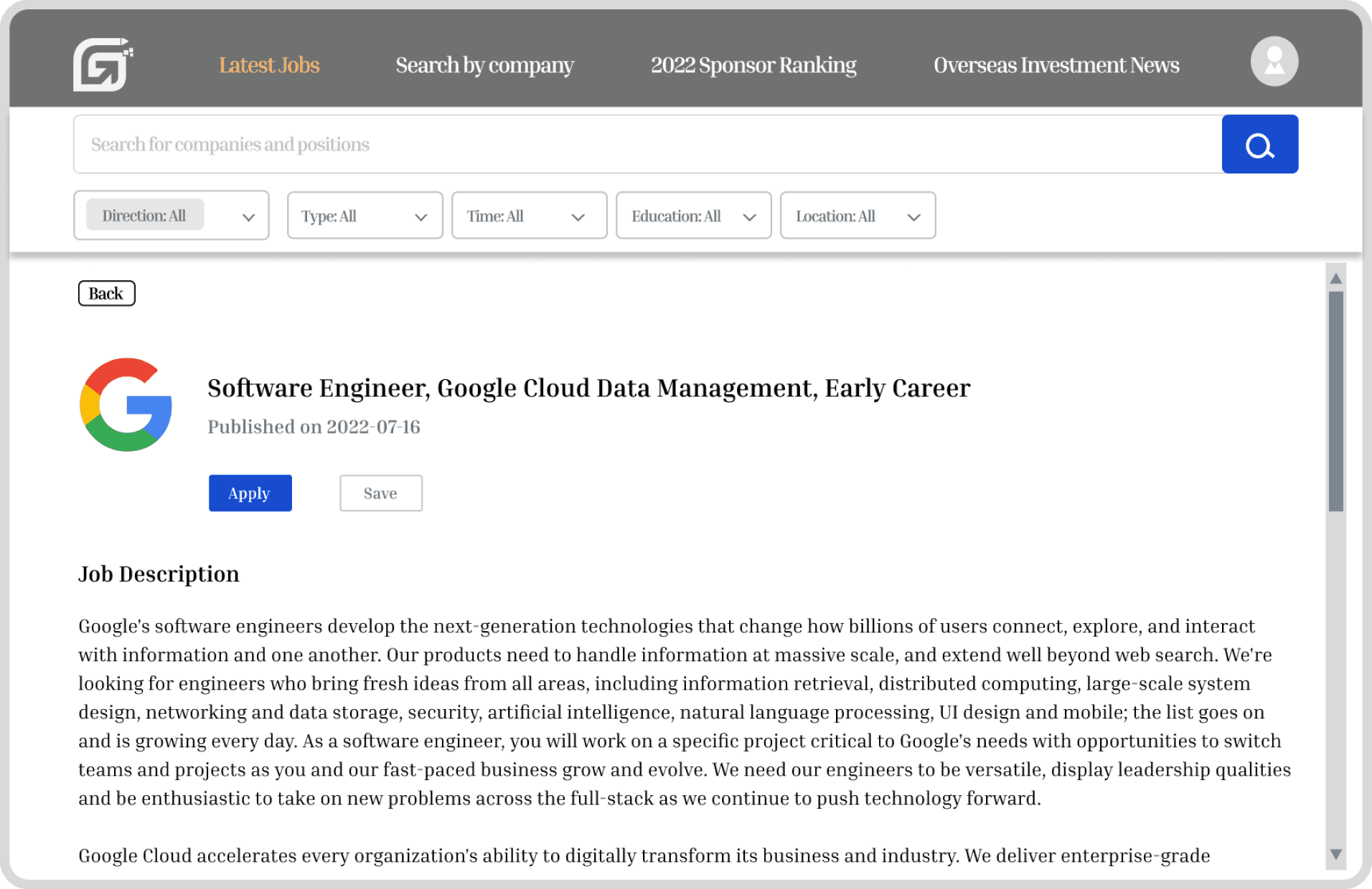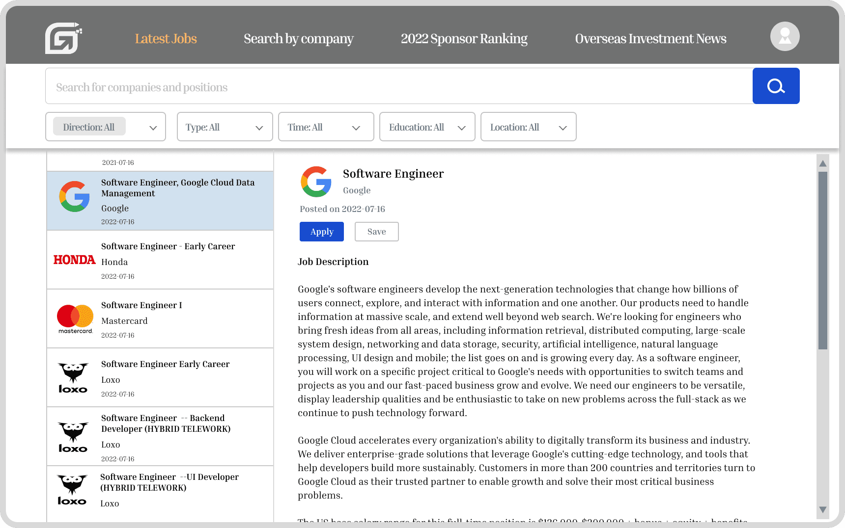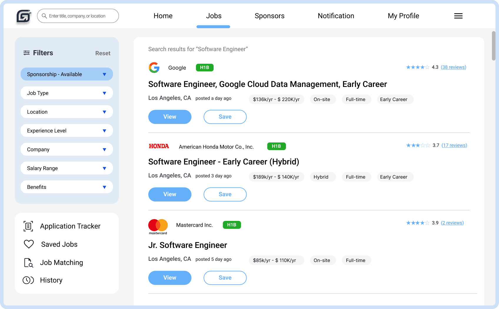 Simplifying job search for international users with sponsorship requirement.