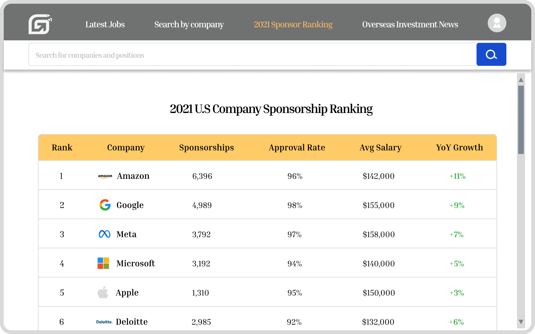 Redesigned Top Sponsorship Companies Ranking — Helped users identify strong, reliable sponsors at a glance.